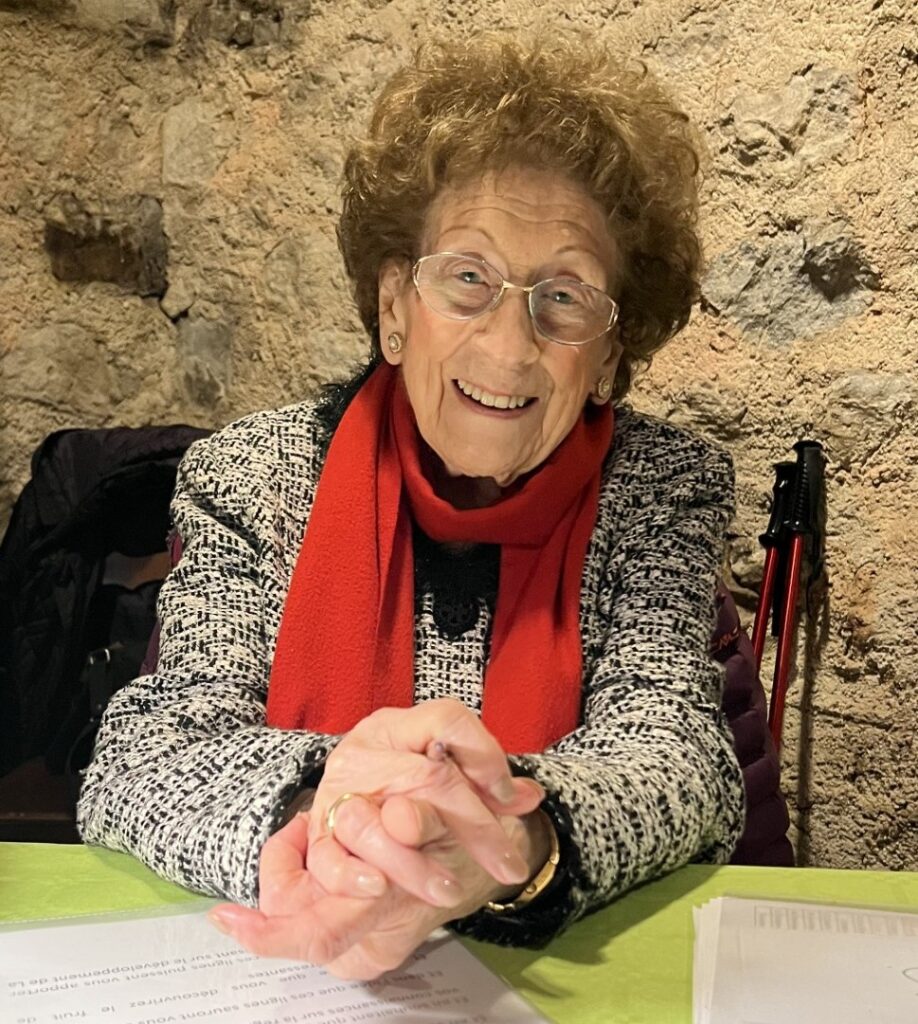 Malgré une santé déficiente elle a continué à participer aux séances de comité de l’Association des Amis, d’organiser jusqu’en 2024 le repas de soutien annuel, d’assumer l’accueil des 5 premières éditions des Jeudis du Château ainsi que la Journée scolaire au Château des enfants des écoles de La Sarraz, journée financée par les revenus de la vente du conte L’Etrange Mystère qu’elle a rédigé et j’en passe…